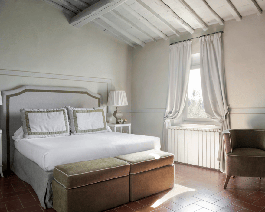 Il Relais Villa Olmo è un esclusivo Wine and Olive Oil Resort a Impruneta, immerso nelle colline del Chianti, nato dalla conversione di una casa colonica del XVI secolo in un boutique hotel. Le camere e le suite, arredate in stile rustico-elegante con travi a vista, cotto e pietra, evocano le tonalità degli ulivi e dei vigneti. Il Relais offre una serie di servizi di lusso, tra cui una piscina panoramica e il ristorante Diadema, dove la cucina toscana viene rivisitata in chiave moderna. Degustazioni enogastronomiche esclusive, in collaborazione con la Cantina Diadema, completano un'esperienza autentica e sensoriale.